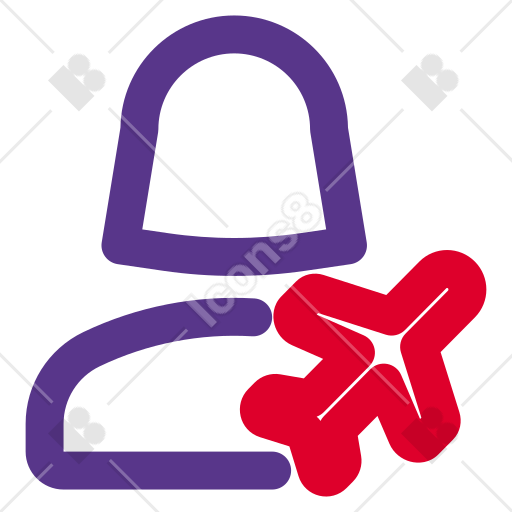 Female user with a flight logotype as an indication of a vacation mode 아이콘